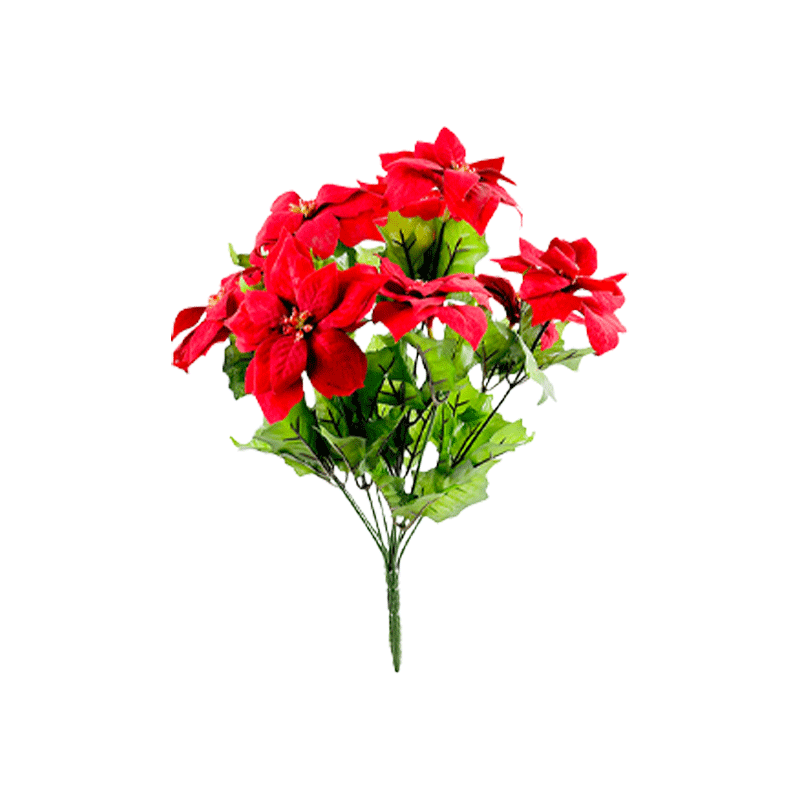 POINSETTIA PIQUET 9 FLEURS ARTIFICIEL 37CM